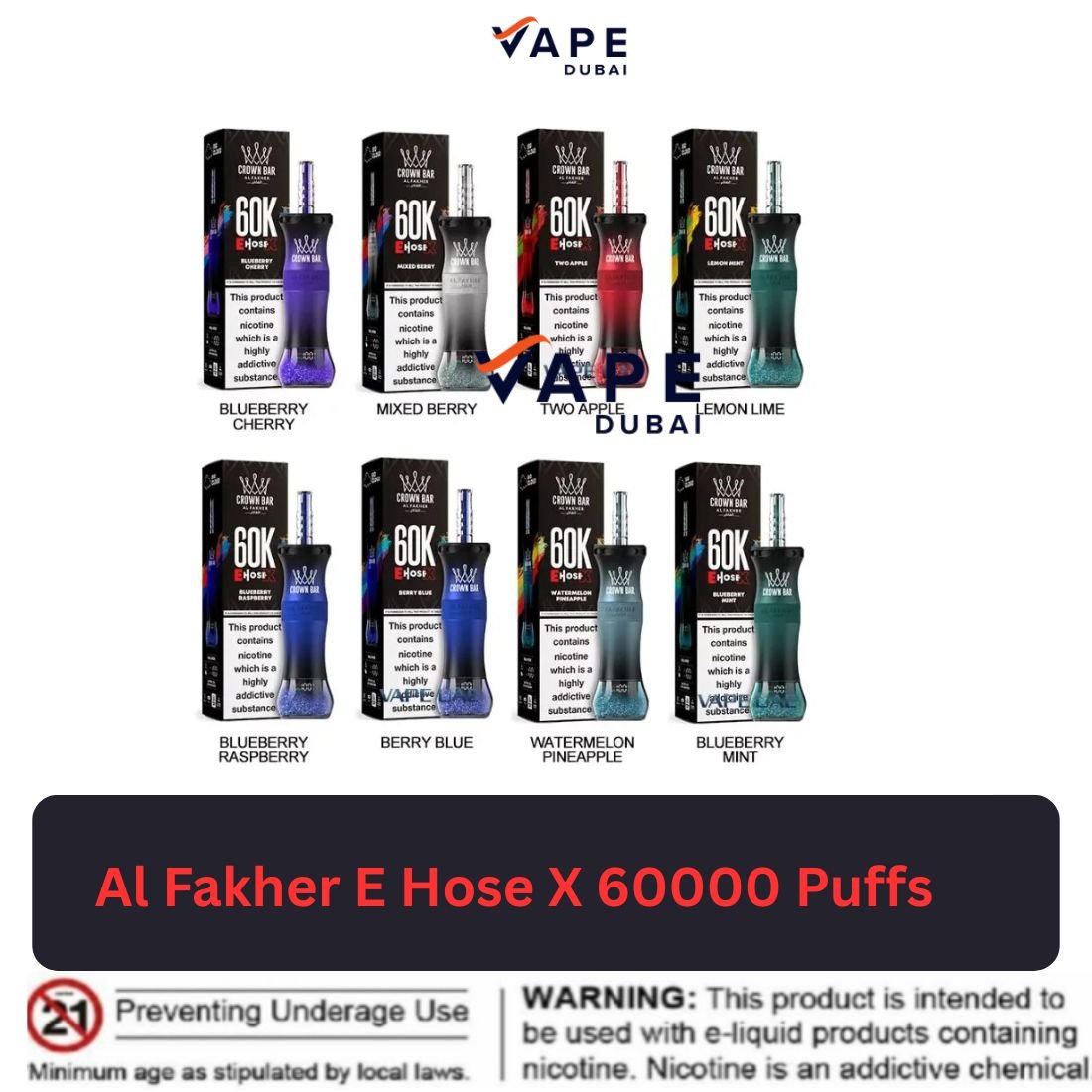 Al Fakher E Hose X 60000 Puffs Disposable Vape is a high-capacity, all-in-one vaping device designed for vapers who want long-lasting performance, strong flavor, and effortless use. Combining a massive puff count with draw-activated simplicity and a rechargeable battery, the E Hose X eliminates the need for refilling, coil changes, or complicated settings. Whether you’re switching from traditional smoking or upgrading from smaller disposables, this device delivers consistent vapor and satisfying taste throughout its life.
