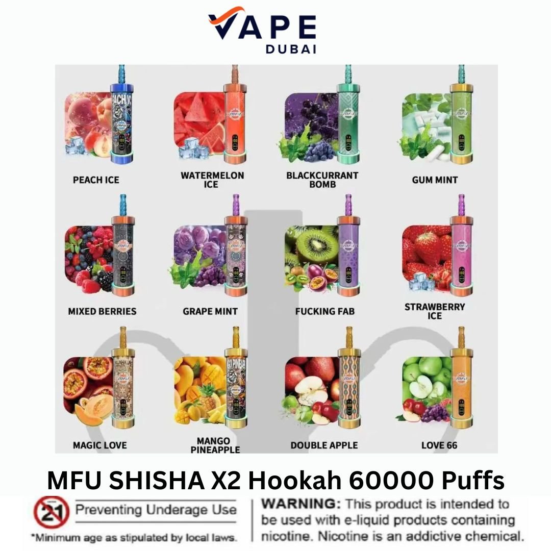 The MFU SHISHA X2 Hookah 60000 Puffs Disposable Vape stands out for its ultra-high capacity, shisha-style performance, and rich flavor delivery. It’s an ideal choice for users seeking convenience, longevity, and a luxurious vaping experience without maintenance or complexity.